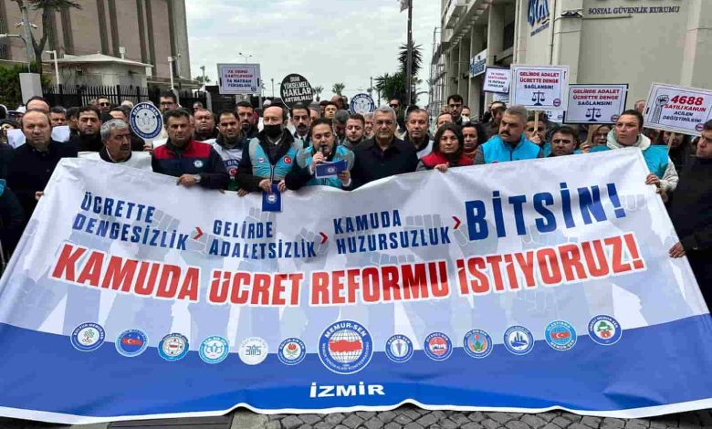 İzmir’de yapılan açıklamada, kamu çalışanlarının yaşadığı ücret adaletsizlikleri ve hükümetten talepler dile getirildi.